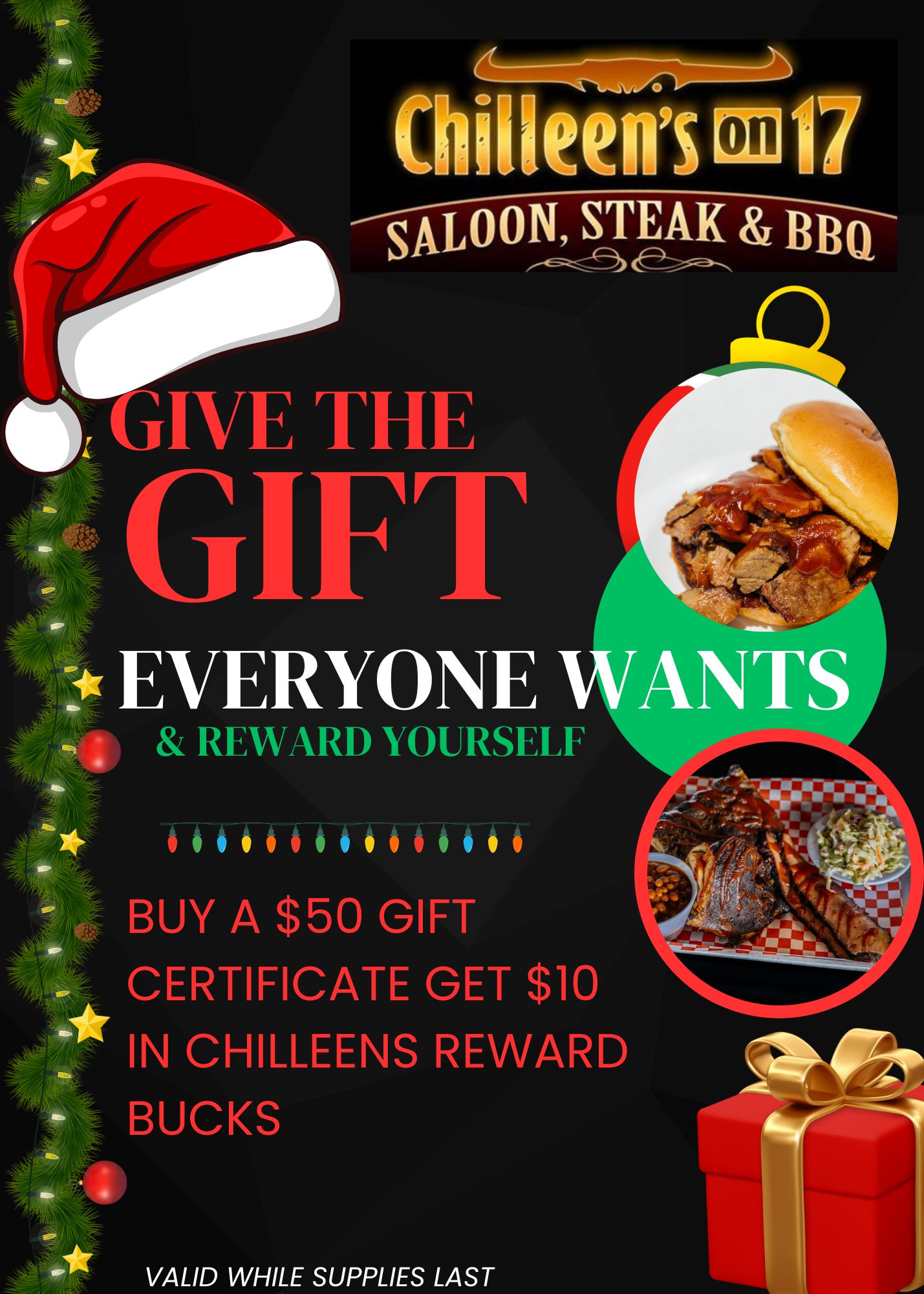 Dinner under twinkle lights.