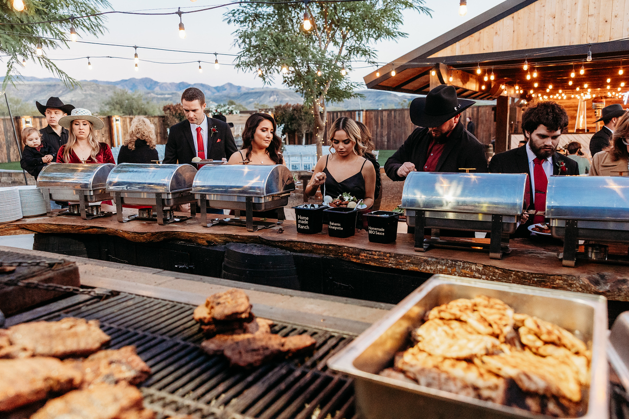 Instead of a plated meal where guests quietly accept what’s placed in front of them, dinner becomes part of the celebration. Guests walk up to the grill, smell the steaks cooking, and choose exactly how they want them prepared—rare, medium, or well-done.